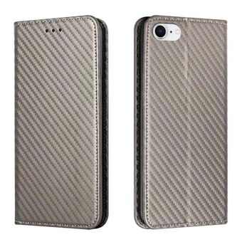 For iPhone 16e Carbon Fiber Texture Magnetic Flip Leather Phone Case(Grey)