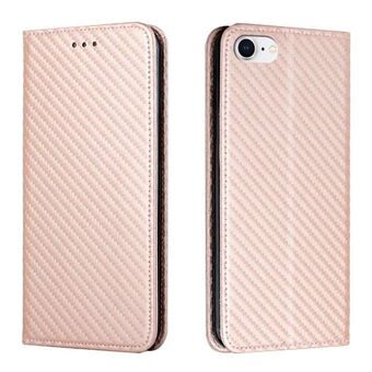 For iPhone 16e Carbon Fiber Texture Magnetic Flip Leather Phone Case(Rose Gold)