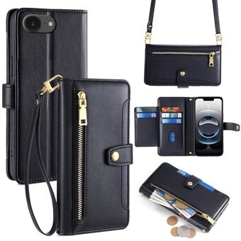 For iPhone 16e Sheep Texture Cross-body Zipper Wallet Leather Phone Case(Black)