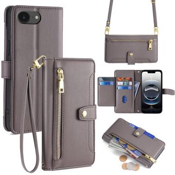 For iPhone 16e Sheep Texture Cross-body Zipper Wallet Leather Phone Case(Grey)