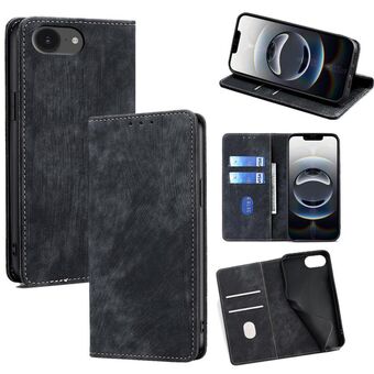 For iPhone 16e RFID Anti-theft Brush Magnetic Leather Phone Case(Black)