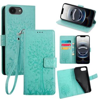 For iPhone 16e Tree & Deer Embossed Leather Phone Case(Green)