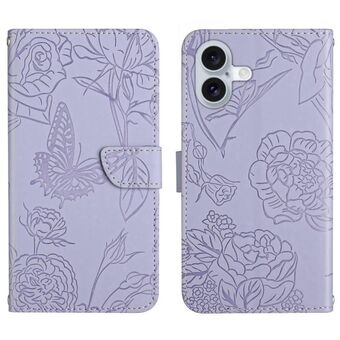 For iPhone 17 Skin Feel Butterfly Embossed Flip Leather Phone Case(Purple)