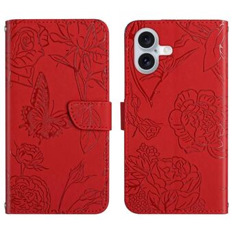 For iPhone 17 Skin Feel Butterfly Embossed Flip Leather Phone Case(Red)