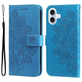 For iPhone 17 Seven-petal Flowers Embossing Leather Phone Case(Blue)