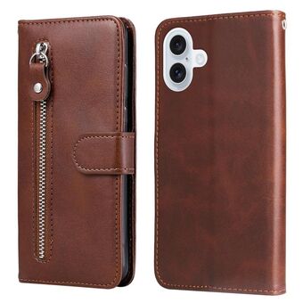 For iPhone 17 Fashion Calf Texture Zipper Leather Phone Case(Brown)