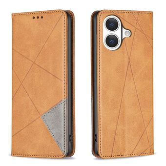 For iPhone 17 Magnetic Buckle Rhombus Texture Leather Phone Case(Brown)