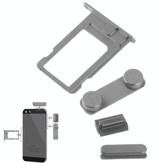 4 in 1 for iPhone 5 & 5S Original Alloy Material Colorful Nano SIM Card Tray + Volume Button + Power Button + Mute Button (Dark Grey)