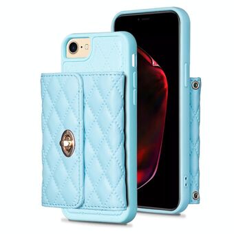 For iPhone SE 2022 / 2020 Grid Stitching Leather Phone Case with Lanyard(Blue)