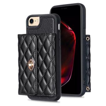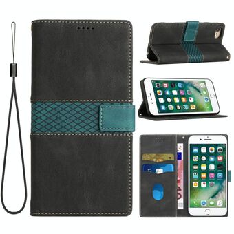 For iPhone SE 2022 / 2020 Grid Stitching Leather Phone Case with Lanyard(Black)