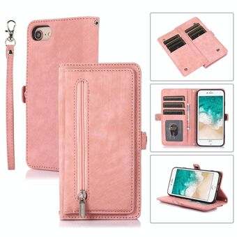 For iPhone 8 / 7 / SE 2020 2022 Zipper Card Slot Buckle Wallet Leather Phone Case(Pink)