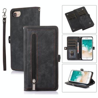 For iPhone 8 / 7 / SE 2020 2022 Zipper Card Slot Buckle Wallet Leather Phone Case(Black)