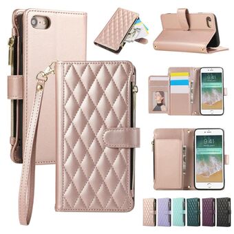 For iPhone 7 / 8 / SE 2022 Rhombic Zipper Wallet Leather Phone Case(Rose Gold)