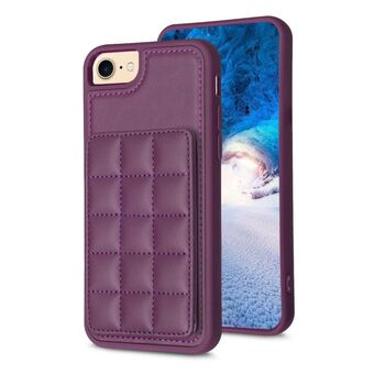 For iPhone SE 2022 / 2020 / 8 / 7 BF25 Square Plaid Card Bag Holder Phone Case(Purple)