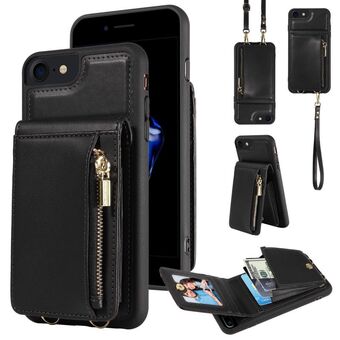 For iPhone SE 2022/ 7 / 8 Crossbody Lanyard Zipper Wallet Leather Phone Case(Black)