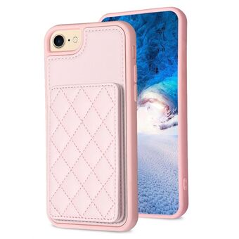 For iPhone SE 2022 / 2020 / 8 / 7 BF25 Square Plaid Card Bag Holder Phone Case(Pink)