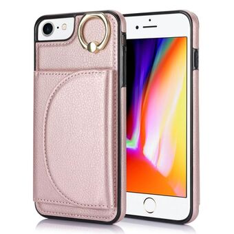 For iPhone SE 2020 / 2020 / 8 / 7 YM007 Ring Holder Card Bag Skin Feel Phone Case(Rose Gold)