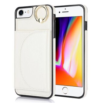 For iPhone SE 2020 / 2020 / 8 / 7 YM007 Ring Holder Card Bag Skin Feel Phone Case(White)