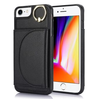 For iPhone SE 2020 / 2020 / 8 / 7 YM007 Ring Holder Card Bag Skin Feel Phone Case(Black)