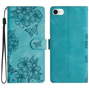For iPhone SE 2022 / SE 2020 Cherry Blossom Butterfly Skin Feel Embossed PU Phone Case(Green)
