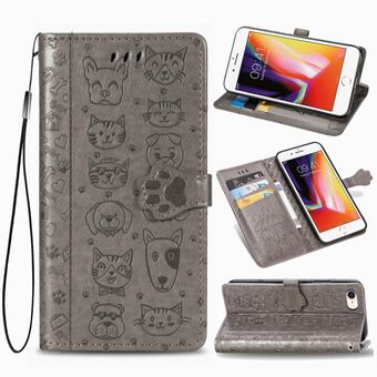 For iPhone SE 2022 / SE 2020 Cute Cat and Dog Embossed Horizontal Flip Leather Case with Bracket / Card Slot / Wallet / Lanyard(Gray)