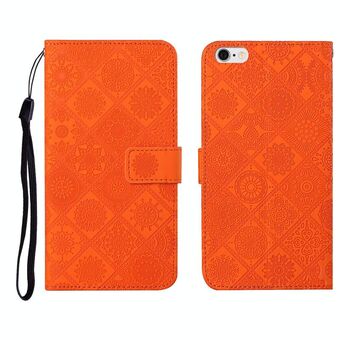 For iPhone SE 2022 / SE 2020 / 8 / 7 Ethnic Style Embossed Pattern Horizontal Flip Leather Case with Holder & Card Slots & Wallet & Lanyard(Orange)