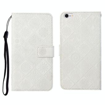 For iPhone SE 2022 / SE 2020 / 8 / 7 Ethnic Style Embossed Pattern Horizontal Flip Leather Case with Holder & Card Slots & Wallet & Lanyard(White)