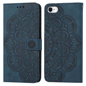 For iPhone SE 2022 / SE 2020 / 8 / 7 Mandala Embossed Flip Leather Phone Case(Blue)