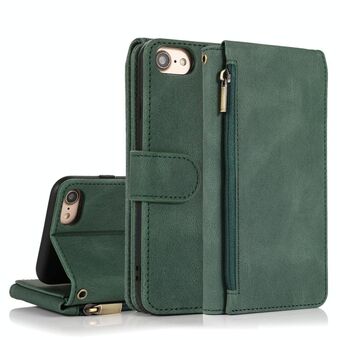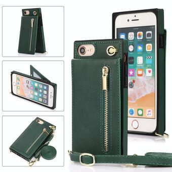 For iPhone SE 2022 / SE 2020 / 8 / 7 Cross-body Zipper Square TPU+PU Back Cover Case with Holder & Card Slots & Wallet & Strap(Green)