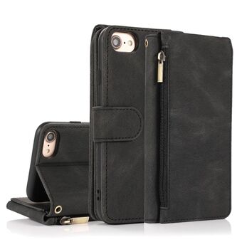 For iPhone SE 2022 / SE 2020 / 8 / 7 Zipper Bag Horizontal Flip Leather Case with Holder & Card Slot & Wallet & Lanyard(Black)