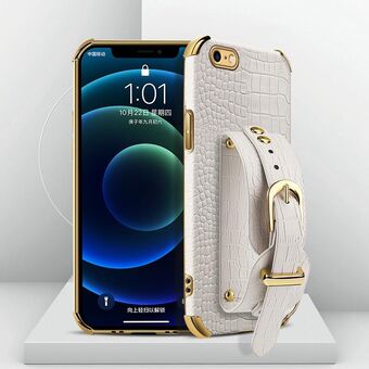 For iPhone SE 2022 / SE 2020 / 8 / 7 Electroplated TPU Crocodile Pattern Leather Case with Wrist Strap(White)