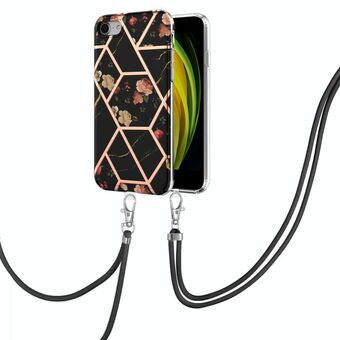 For iPhone SE 2022 / SE 2020 / 8 / 7 Electroplated TPU Crocodile Pattern Leather Case with Wrist Strap(Black)