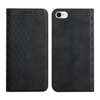 For iPhone SE 2022 / SE 2020 / 8 / 7 Elegant Rhombic Pattern Microfiber Leather +TPU Shockproof Case with Crossbody Strap Chain(Black)