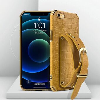 For iPhone SE 2022 / SE 2020 / 8 / 7 Electroplated TPU Crocodile Pattern Leather Case with Wrist Strap(Yellow)