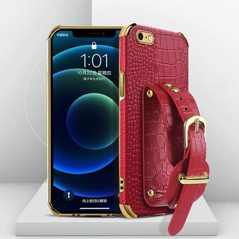 For iPhone SE 2022 / SE 2020 / 8 / 7 Electroplated TPU Crocodile Pattern Leather Case with Wrist Strap(Red)