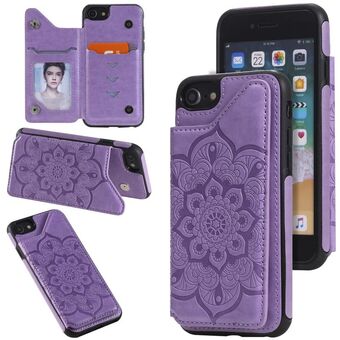 For iPhone SE 2022 / SE 2020 / 8 / 7 Flower Embossing Pattern Shockproof Protective Case with Holder & Card Slots & Photo Frame(Purple)