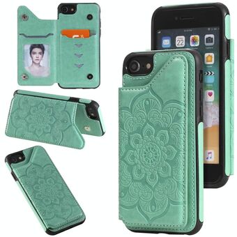 For iPhone SE 2022 / SE 2020 / 8 / 7 Flower Embossing Pattern Shockproof Protective Case with Holder & Card Slots & Photo Frame(Green)