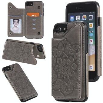 For iPhone SE 2022 / SE 2020 / 8 / 7 Flower Embossing Pattern Shockproof Protective Case with Holder & Card Slots & Photo Frame(Grey)