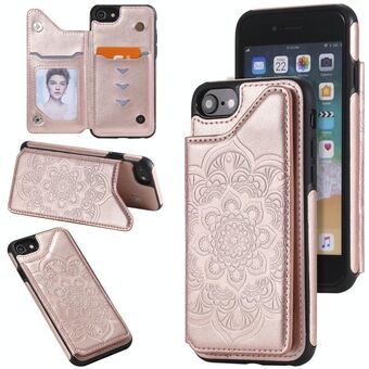 For iPhone SE 2022 / SE 2020 / 8 / 7 Flower Embossing Pattern Shockproof Protective Case with Holder & Card Slots & Photo Frame(Rose Gold)