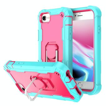 For iPhone SE 2022 / SE 2020 / 8 / 7 PC + Rubber 3-layers Shockproof Protective Case with Rotating Holder(Mint Green + Rose Red)