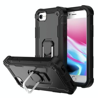 For iPhone SE 2022 / SE 2020 / 8 / 7 PC + Rubber 3-layers Shockproof Protective Case with Rotating Holder(Black)