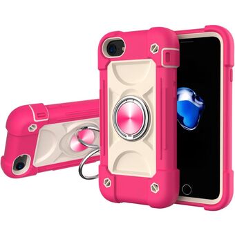 Shockproof Silicone + PC Protective Case with Dual-Ring Holder For iPhone 6/6s/7/8/SE 2022 / SE 2020(Guava)