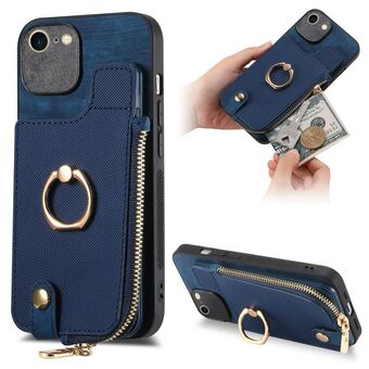 For iPhone 7 / 8 / SE 2022 Cross Leather Ring Vertical Zipper Wallet Back Phone Case(Blue)