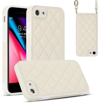 For iPhone SE 2022 / SE 2020 Rhombic Texture Phone Case with Dual Lanyard(White)