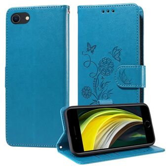 For iPhone 7 / 8 / SE 2022 Embossed Butterfly Flowers Leather Phone Case(Blue)