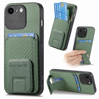 For iPhone 7 / 8 / SE 2022 Carbon Fiber Card Bag Fold Stand Phone Case(Green)