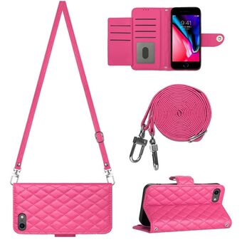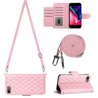 For iPhone SE 2022 / SE 2020 Rhombic Texture Phone Case with Dual Lanyard(White)