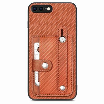 For iPhone SE 2022 / 2020 / 7 / 8 Wristband Kickstand Card Wallet Back Cover Phone Case with Tool Knife(Brown)