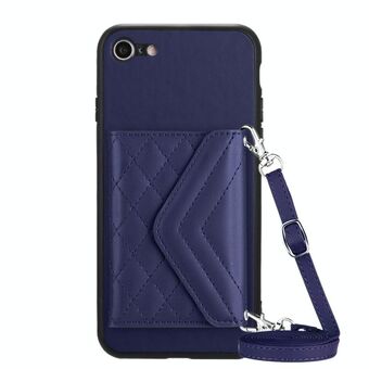 For iPhone SE 2022 / SE 2020 Rhombic Texture Card Bag RFID Phone Case with Long Lanyard(Blue)