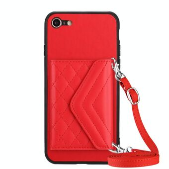 For iPhone SE 2022 / SE 2020 Rhombic Texture Card Bag RFID Phone Case with Long Lanyard(Red)